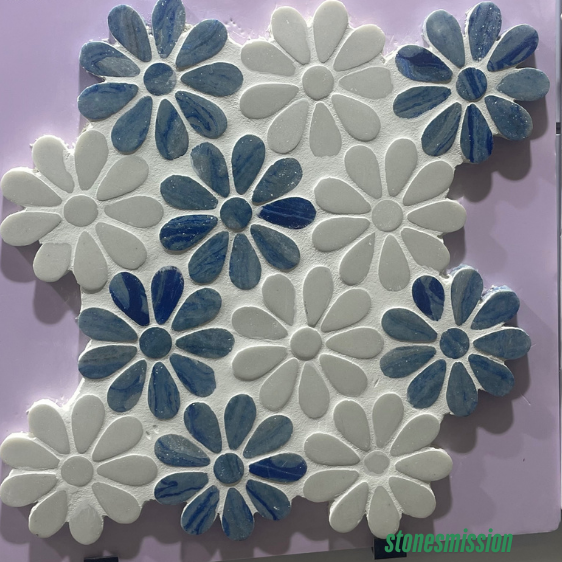 These Floral - shaped Blue and White Marble Mosaic Tiles are inspired by the beauty of flowers. The blue and white marble pieces are crafted into flower - like shapes, creating a delicate and charming pattern. The natural veining in the marble enhances the authenticity of the floral design. Ideal for use in bathrooms, bedrooms, or as an accent wall in a living room. They are made from high - quality marble, ensuring long - lasting beauty and durability. Easy to install and clean, these tiles can transform your space into a haven of freshness and elegance.